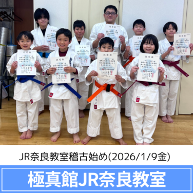 JR奈良教室の稽古風景 JR奈良教室稽古始め(2026/1/9金) JR奈良教室の初稽古を行いました。 昇級した生徒たちに新しい帯を手渡し、気持ちも新たにスタートです。 今年もそれぞれの目標に向かって、みんなで頑張っていきましょう!🔥🥋 ------------------------------- 【極真... 2026.01.09 JR奈良教室の稽古風景